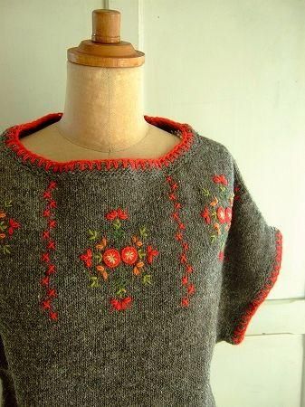 color グレー、レッド、グリーン、オレンジ、素材 wool100%、made in PERU、size 38、着丈47cm、バスト98cm、袖丈14cm、肩幅38cm、※多少のサイズの誤差が生じる場合がございます。予めご了承下さいませ。