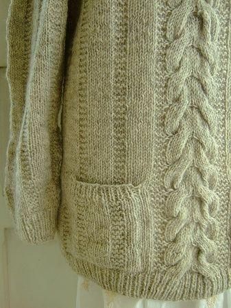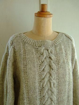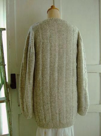 color グレー×オフホワイト(ミックス)、素材 wool100%、made in Nepal、size M、着丈82cm、バスト90cm、袖丈62cm、肩幅38cm、※手編みの為、1点1点サイズに多少の誤差が生じる場合がございます。予めご了承下さいませ。