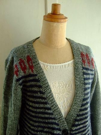 color グレー、ネイビー、エンジ、素材 wool100%、made in Nepal、size M、着丈66cm、バスト95cm、袖丈60cm、肩幅38cm、※手編みの為、1点1点サイズに多少の誤差が生じる場合がございます。予めご了承下さいませ。