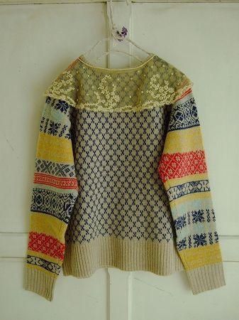 nesessaireちぐはぐジャガード柄カーディガンNV