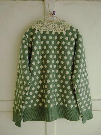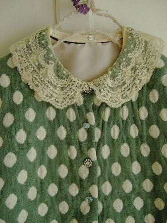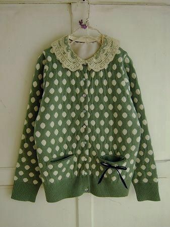 color ミント、アイボリー、素材 wool100%、(襟部分 ナイロン100%)、made in China、size F、 着丈55cm、バスト94cm、袖丈58cm、肩幅38cm、※チュールレースの付け襟はボタンで留まっております為、取り外しが可能です。ベロアのリボンブローチ付きです。