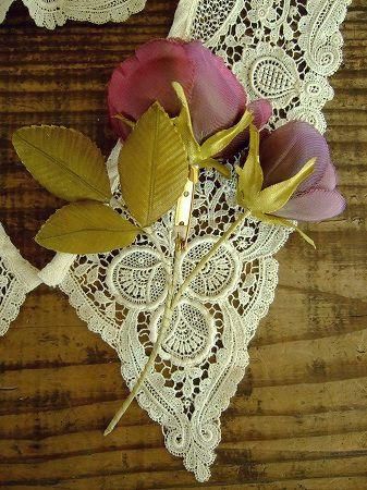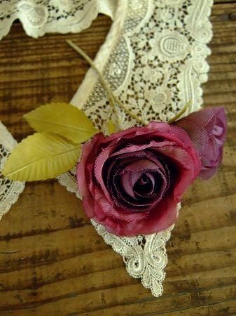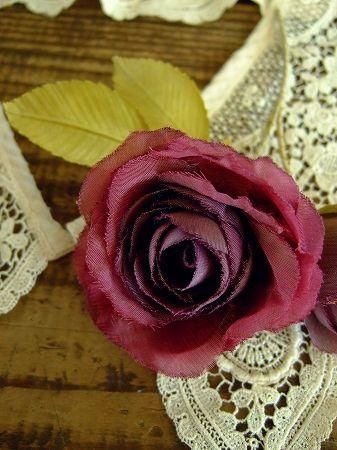 color ブランルージュ、グリーン、素材 コットン、シルク、made in JAPAN、size (薔薇)直径5cm / 3cm、全長14cm