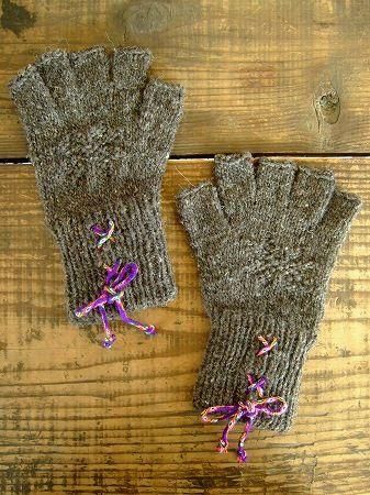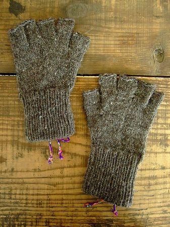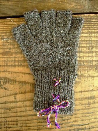 color チャコール、素材 wool100%、(紐 アクリル100%)、made in PERU、size F、全長21cm、※1点1点多少のサイズの誤差が生じる場合がございます。予めご了承くださいませ。指先が出るタイプのデザインとなります。