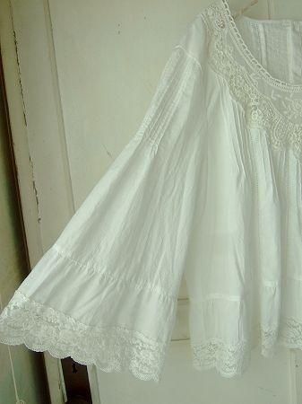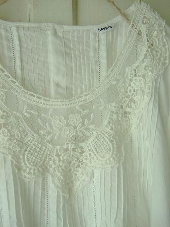 color オフホワイト、素材 cotton100%、(レース部分)cotton100%、made in China、size 38、着丈54cm、バスト102cm、袖丈47cm、肩幅38cm
