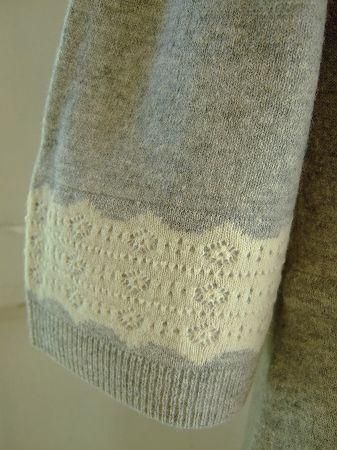 color グレー、オフホワイト、素材 wool100%、made in Ireland 、size S、 着丈88cm、バスト82cm、袖丈33cm、肩幅38cm、※裏地は付いておりません。