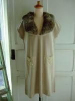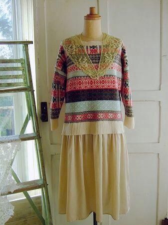 color アイボリー、レッド、ブラウン、ブルー、ブラック、(スカート部分 ベージュ)、素材 wool100%、(スカート部分 コットン100%、付け襟 ナイロン100%)、made in China、size F、 着丈106cm、バスト102cm、袖丈45cm(切替しより35cm)、肩幅38cm、※裏地は付いておりません。