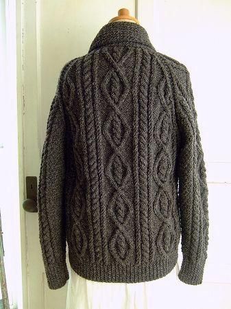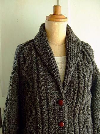color チャコール、素材 wool100%、made in Scotland、size 着丈65cm、バスト96cm、袖丈63cm、肩幅38cm、※こちらは手編みのニットとなります。