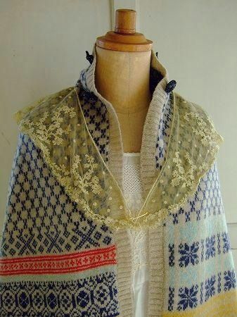color ベージュ、ネイビー、イエロー、レッド、ブルー、素材 wool100%、(付け襟 ナイロン100%)、made in China、size F、 幅50cm×長さ170cm、※取り外し可能なチュールレースの付け襟とショールピン付きです。