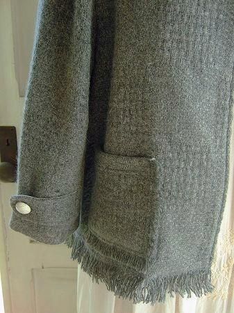 color グレー、素材 ウール65%、アンゴラ20%、ナイロン15%、(別地 コットン100%、裏地 ポリエステル100%)、made in China 、size 38、着丈52cm、バスト106cm、袖丈42cm、肩幅38cm