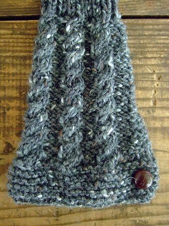 color チャコール、素材 wool100%、made in Ireland、size 全長30cm、※ハンドニットの為、多少のサイズの誤差が生じる場合がございます。どうぞご了承下さいませ。何色かの毛糸がミックスして編み上げられています。