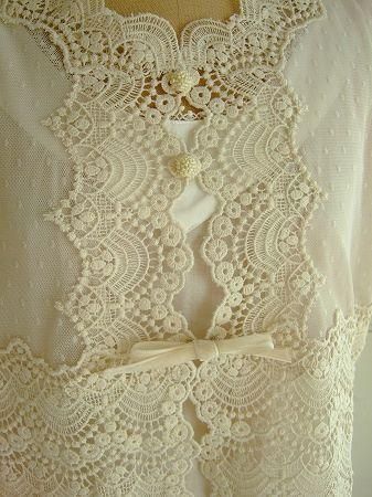 color アイボリー、素材 (チュール部分)ナイロン100%、(レース部分)コットン100%、made in Japan、size F、着丈40cm、バスト115cm、袖丈20cm、肩幅38cm