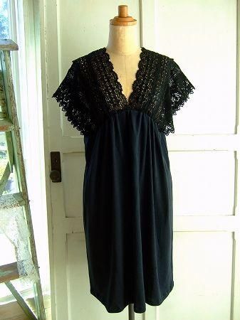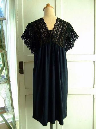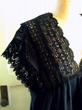 color ブラック、素材 cotton100%、(レース部分)ウール、コットン、ナイロン、made in Japan、size F、着丈91cm、バスト94cm、袖丈20cm、肩幅38cm、※裏地は付いておりません。