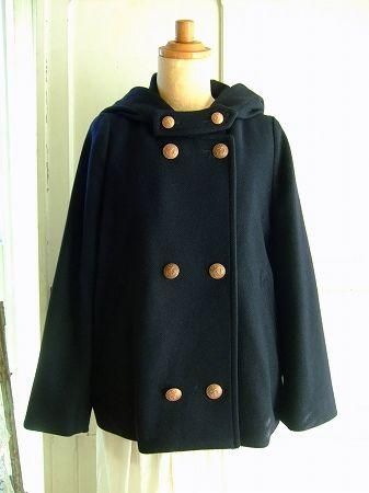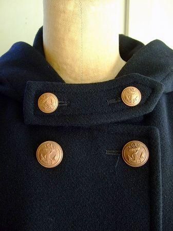 color ネイビー、素材 ウール90%、ナイロン10%、(裏地 キュプラ62%、コットン38%)、made in Japan、size 2、着丈58cm、バスト 124cm、袖丈59cm、肩幅38cm、※身幅、袖幅が広くポンチョのようなデザインとなります。