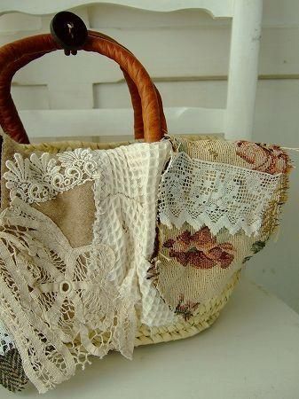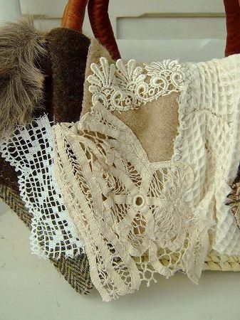 color ナチュラル、オフホワイト、アイボリー、ベージュ、ブラウン、素材 コットン、ウール、made in JAPAN、size (カゴバッグ)幅37cm、高さ17cm、(底25×17cm)、※こちらの製品は手刺繍、手編み、デッドストックのハンカチやクロスを使用したリメイク商品です。多少の傷や汚れはご了承下さいませ。