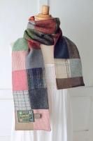 color グリーン×グレー、素材 wool100%、made in Scotland、size 59cm×195cm