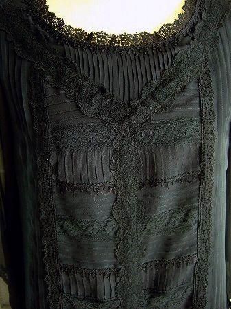 color ブラック、素材 silk100%、(裏地 ポリエステル100%、レース ナイロン100% / 袖レース コットン100%)、made in China、size 38、着丈91cm、バスト95cm、袖丈46cm、肩幅38cm