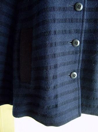 color ネイビー、素材 ウール82%、ナイロン10%、アンゴラ8%、(裏地 ポリエステル100% / リブ コットン100%)、made in China、size 38、着丈58cm、身幅130cm、肩幅38cm、※ラビットファーはボタンで留まっております為、取り外しが可能です。