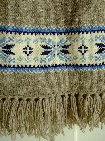 color グレー、オフホワイト、ブルー、素材 wool100%、made in PERU、size 38、着丈59cm(+フリンジ9cm)、ウエスト64cm(ゴムが入っています)、ヒップ95cm、※多少のサイズの誤差が生じる場合がございます。予めご了承下さいませ。裏地は付いておりません。
