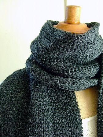 color チャコール、素材 wool100%、made in England、size 幅20cm×長さ132cm(+フリンジ10cm)