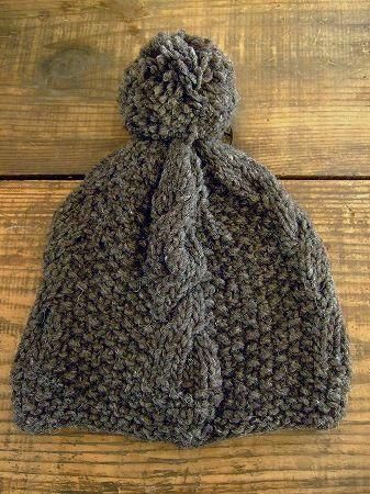 【made in Peru】ケーブル編みボンボンニット帽CC