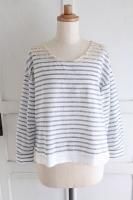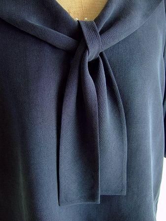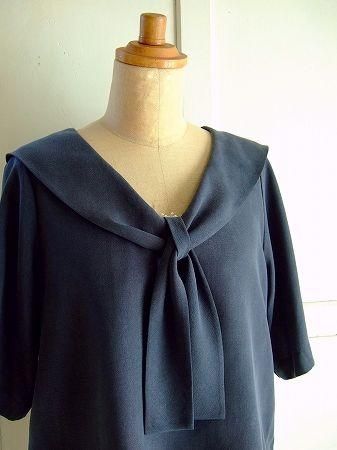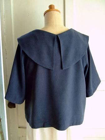 color ネイビー、素材 テンセル100%、(別布)cotton100%、made in Japan、size F、 着丈50cm、バスト100cm、袖丈32cm、肩幅38cm、※裏地は付いておりません。