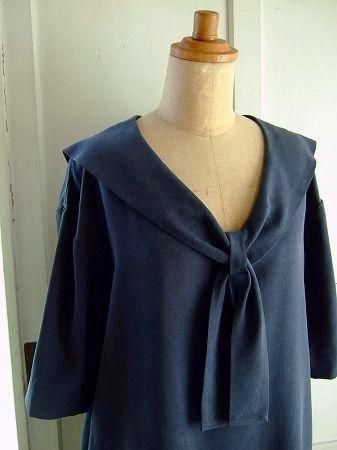 color ネイビー、素材 テンセル100%、(別布)cotton100%、made in Japan、size F、 着丈89cm、バスト105cm、袖丈38cm(切替しより29cm)、肩幅38cm、※裏地は付いておりません。