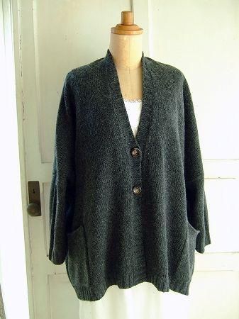 color チャコール、素材 cotton60%、wool40%、made in China、size M、着丈65cm、バスト 182cm、袖丈54cm(切替より28cm)、肩幅38cm