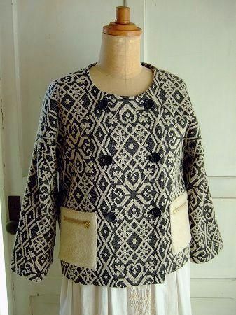 color グレー、ベージュ、素材 ウール49%、レーヨン28%、コットン23%、(別布アクリル100%、裏地ポリエステル100%/コットン100%)、made in China 、size 38、着丈50cm、バスト96cm、袖丈48cm(切替しより34cm)、肩幅38cm