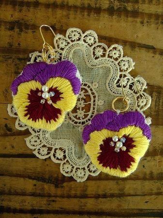 color パープル、イエロー、素材 コットン、ピーズ、made in China、size (パンジーモチーフ)直径3.5cm