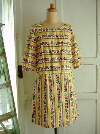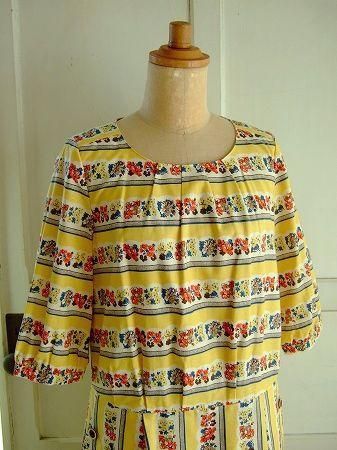 color イエロー、オフホワイト、オレンジ、ブラウン、素材 cotton100%、(裏地 ポリエステル100%)、made in China、size 38、着丈89cm、バスト94cm、袖丈39cm、肩幅38cm、※haupiaさんオリジナルフラワープリント生地です。