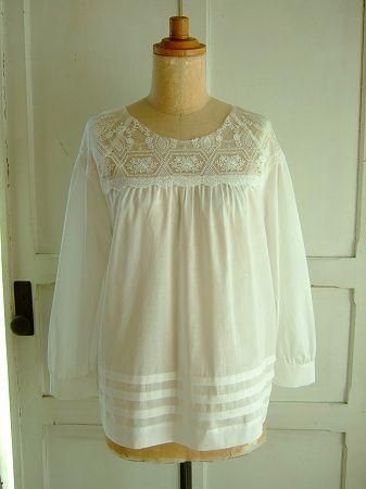 color オフホワイト、素材 cotton100%、(レース部分 ナイロン100%)、made in China、size 38、着丈60cm、バスト112cm、袖丈55cm、肩幅38cm