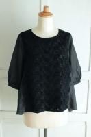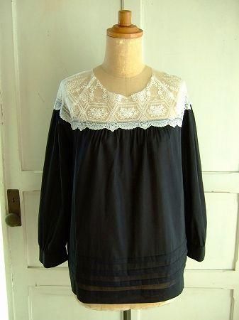 color ネイビー、オフホワイト、素材 cotton100%、(レース部分 ナイロン100%)、made in China、size 38、着丈60cm、バスト112cm、袖丈55cm、肩幅38cm