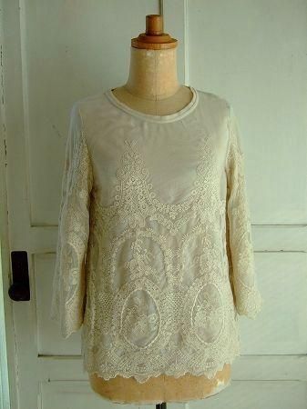 color アイボリー、素材 ポリエステル100%、(レース コットン50%、ポリエステル50%)、made in CHINA 、size 38、着丈59cm、バスト90cm、袖丈50cm、肩幅38cm、※シフォン生地とチュールレースの2枚重ねになっております。
