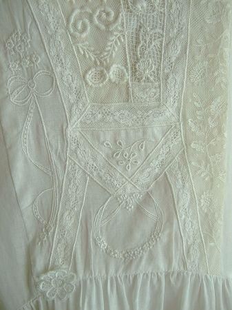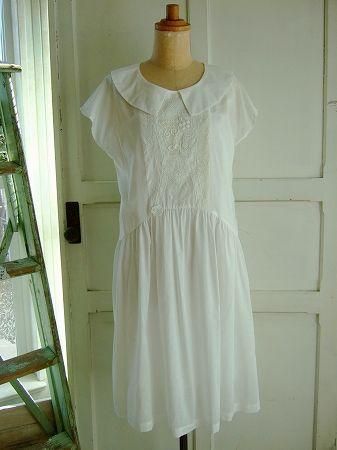 color オフホワイト、素材 cotton100%、(アンダードレス アセテート100%)made in China、size F、着丈98cm、バスト98cm、袖丈11cm、肩幅38cm、※セパレートタイプのキャミワンピース付きです。