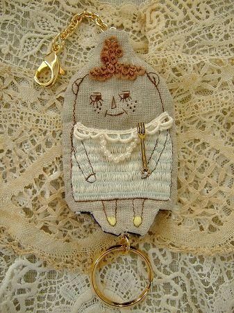 color ナチュラル、オフホワイト×ミント、素材 リネン、コットン、made in CHINA、size 身長9.5cm、(チェーンの長さ)20cm