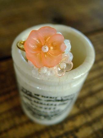 color サーモンピンク、ホワイト、ゴールド、素材 真鍮、樹脂、マザーオブパール、ラインストーン、made in JAPAN、size 直径2cm、フリーサイズ(サイズ調節可能です)