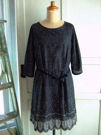 haupia葉っぱカットワーク刺繍水玉ワンピースBK