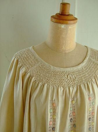 nesessaireルーマニア刺繍とハンドスモッキングブラウスBG
