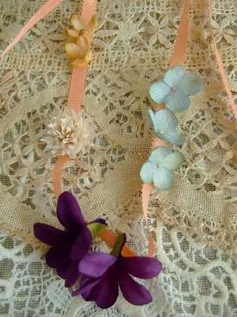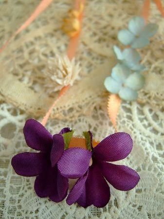 color パープル、グリーン、ブルー、オレンジ、サーモンピンク、素材 コットン、made in JAPAN、size (すみれ)3cm、(リボン)86cm