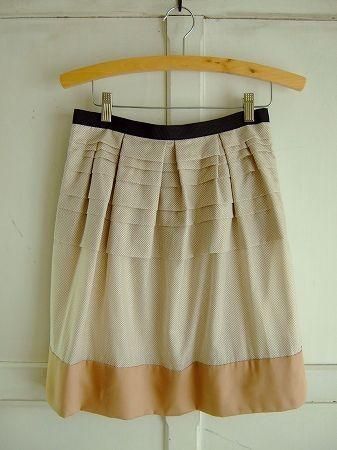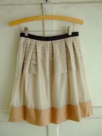 color オフホワイト、ブラウン、ピンク、素材 cotton100%、(別布 コットン55%、リヨセル45%、裏地 ポリエステル100%)、made in China、size 38、着丈49cm、ウエスト66cm、ヒップ105cm