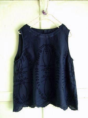 nesessaireカットワーク刺繍ノースリーブブラウスNV