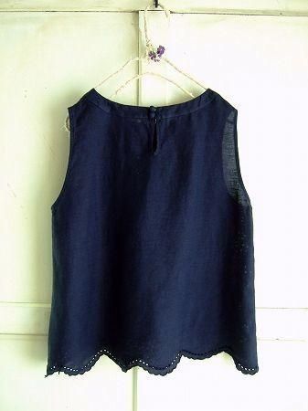 color ネイビー、素材 Linen100%、made in Porugal、size F、着丈54cm、バスト94cm、肩幅38cm、※裏地は付いておりません。