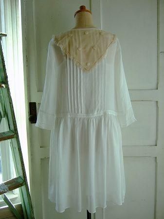 color オフホワイト、ベージュ、素材 Linen100%、(別地 ナイロン100%、裏地 アセテート100%)、made in China、size F、着丈94cm、バスト92cm、袖丈47cm、肩幅38cm、※ドットの刺繍が施された襟は縫い留まっております為、取り外しが不可となります。セパレートタイプのキャミワンピースの裏地付きです。