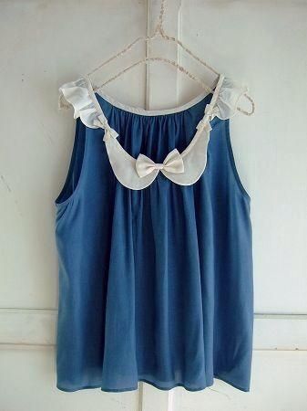 color ブルー、アイボリー、素材 テンセル100%、(別布 コットン75%、シルク25%)、made in Japan、size F、着丈57cm、バスト110cm、肩幅38cm