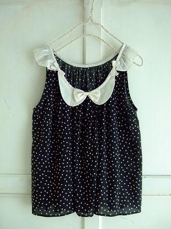 nesessaireバイカラーノースリーブドットブラウスBK