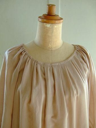 color ピンクベージュ、オフホワイト、素材 テンセル100%、(レース部分 コットン90%、ナイロン10%)、made in China、size 38、着丈54cm、バスト116cm、袖丈35cm、肩幅38cm、※バック裾部分にゴムが入っています。