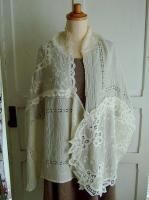 color オフホワイト、素材 リネン100%、(レース部分 コットン90%、ナイロン10%)、made in China、size 38、着丈56cm、バスト104cm、袖丈25cm、(切替しより20cm)、肩幅38cm、※チュールレース襟はボタンで留まっております為、取り外しが可能です。