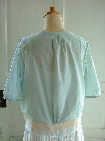 color ブルー×ピンク、素材 cotton100、made in China、size 38、着丈52cm、バスト110cm、袖丈32cm、肩幅38cm