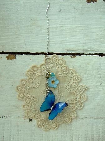 color ブルー、シルバー、素材 樹脂、真鍮、made in JAPAN、size (蝶々)2・2×2.2cm、全長10.5cm、※こちらは片耳ピアスとなります。