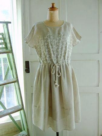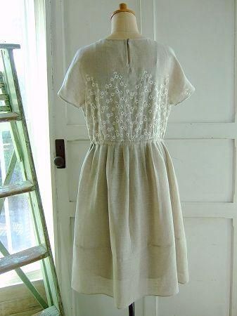 color ナチュラル、(刺繍 オフホワイト)、素材 Linen100%、(刺繍糸 レーヨン100%、アンダードレス(トップ)コットン100%、(ボトム)ポリエステル100%)made in China、size 38、着丈98cm、バスト96cm、袖丈16cm、肩幅38cm、※セパレートタイプのアンダードレス付きです。
